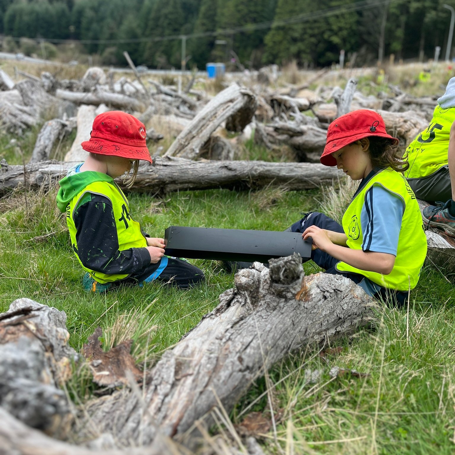 Ākonga from Queenstown Primary School set up a pest trap at Matakauri wetland
