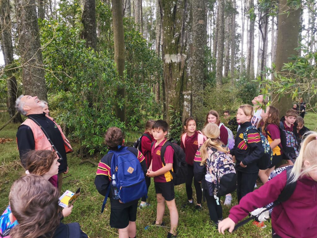 Through this inquiry,  I supported lead Enviroschools teacher Alicia to connect with Rick from Landcare Trust. Rick had been monitoring the nearby kahikatea stand (Gerald Hill Reserve) and shared his knowledge with the students, explaining the rarity of the pekapeka, how they roost in bat houses, and why caring for their habitat matters. Inspired by his visit, the class got the chance to install the school’s own bat roost at the local kahikatea stand, deepening their connection to the land and its native species.