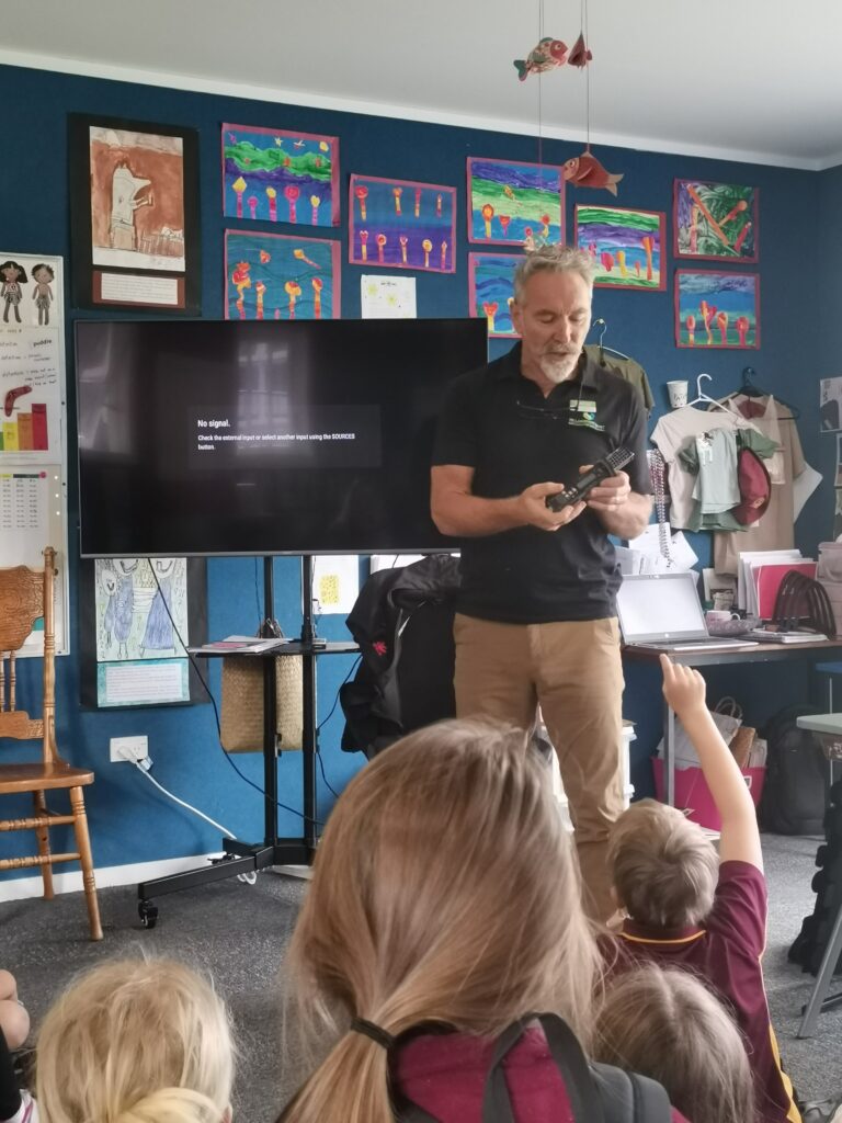 Rick from Landcare Trust shared his pekapeka knowledge with students