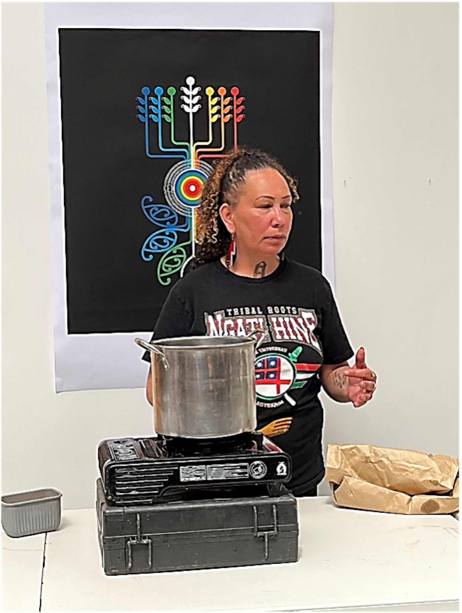 Our day with Whaea Ani centred around Hua Parakore, a kaupapa Māori framework for growing kai developed by Te Waka Kai Ora (National Māori Organics Authority). Hua Parakore is not only a growing system but also an Indigenous validation and verification scheme, a way for growers to tell their kaupapa Māori story of food production. It ensures kai is grown in balance with all elements of nature, traceable, uncontaminated, and created in harmony with wairua and mauri intact.