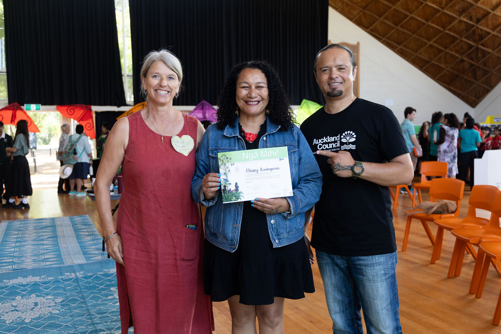 On International Children’s Day, over 130 Early Childhood Education sector representatives, school students, key teachers, principals and Council local board members gathered at Mt Albert War Memorial Hall for the annual Sustainable Schools Celebration event. Te Puna o Wairaka, Mount Albert Grammar School’s Yr10 kapa haka group led the mihi whakatau, opening the positive energy for shared learning. Standing proudly by displays of their work, students from 18 schools and ECE taught us about the action for the environment underway in their communities, and what it means to be an Enviroschool. Achievements and successes included predator control, building healthy soil, and increasing biodiversity within their school grounds, in local parks and on private land.